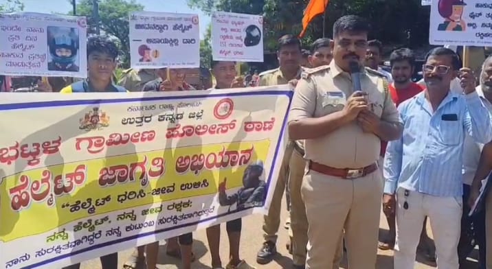 ಹೆಲ್ಮೆಟ್ ಧರಿಸಿ ಜೀವ ಉಳಿಸಿ ಭಟ್ಕಳ ಪೊಲೀಸರಿಂದ ಜನ ಜಾಗೃತಿ ಅಭಿಯಾನ