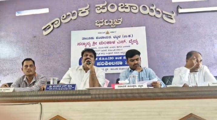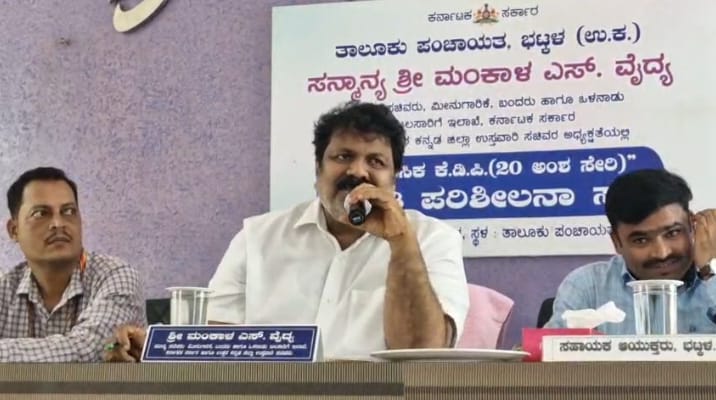 ಭಟ್ಕಳ : ಜಿಲ್ಲಾ ಉಸ್ತುವಾರಿ ಸಚಿವ ಮಂಕಾಳ ಎಸ್. ವೈದ್ಯ ಅವರ ಅಧ್ಯಕ್ಷತೆಯಲ್ಲಿ ಸೋಮವಾರದಂದು ಇಲ್ಲಿನ ತಾಲೂಕು ಪಂಚಾಯತ ಸಭಾಗ್ರಹದಲ್ಲಿ ತ್ರೈಮಾಸಿಕ ಕೆ.ಡಿ.ಪಿ. ಸಭೆ (೨೦ ಅಂಶಗಳ) ಪ್ರಗತಿ ಪರಿಶೀಲನಾ ಸಭೆಯು ನಡೆಯಿತು. ಸಭೆಯಲ್ಲಿ ಆರೋಗ್ಯ, ಶಿಕ್ಷಣ, ತೋಟಗಾರಿಕೆ, ಪಶುಸಂಗೋಪನೆ ಸೇರಿದಂತೆ ವಿವಿಧ ಇಲಾಖೆಗಳ ಪ್ರಗತಿ ಪರಿಶೀಲನೆ ನಡೆಸಲಾಯಿತು.