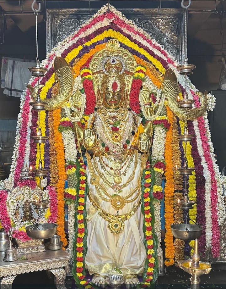 ಭಟ್ಕಳ: ತಾಲೂಕಿನ ಅಳ್ವೆ ಕೊಡಿಯ ಶ್ರೀಮಾತೇ ದುರ್ಗಾಪರಮೇಶ್ವರಿ ದೇವಿಯು ನವರಾತ್ರಿಯ ಪ್ರಥಮ ದಿನವಾದ ಇಂದು ಬಿಳಿಯ ಬಣ್ಣದ ಸೀರೆಯಿಂದ ಅಲಂಕೃತಗೊಂಡು ಶೈಲ ಪುತ್ರಿ ರೂಪದಲ್ಲಿ ವಿರಾಜಮಾನಗಳಾಗಿ ಬಂದಂತಹ ಭಕ್ತರಿಗೆ ಆಶೀರ್ವದಿಸಿದ್ದಾಳೆ.