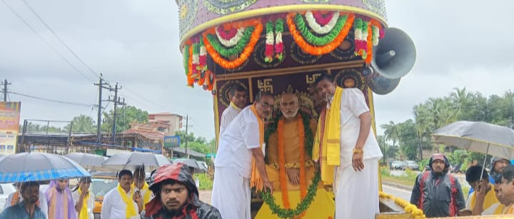 ಶ್ರೀ ನಾರಾಯಣ ಗುರುಗಳ ಮೂರ್ತಿಯನ್ನು ತೆರೆದ ವಾಹನದಲ್ಲಿ ಮೆರವಣಿಗೆಯ ಮೂಲಕ ಹಳೆಕೋಟೆ ಹನುಮಂತ ದೇವಸ್ಥಾನದವರೆಗೆ ತರಲಾಯಿತು.