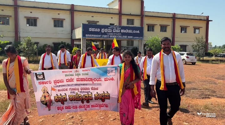 ಮಂಕಿ:ದಿನಾಂಕ 11.11.2025 ಮಂಗಳವಾರ ದಂದು ಸರ್ಕಾರಿ ಪ್ರಥಮ ದರ್ಜೆ ಕಾಲೇಜು ಮಂಕಿ ಇಲ್ಲಿ ನಡೆದಂತಹ 70ನೇ ಕನ್ನಡ ರಾಜ್ಯೋತ್ಸವ ಅಂಗವಾಗಿ ಹಮ್ಮಿಕೊಂಡಿದ್ದ ಕನ್ನಡಾಂಬೆಯ ಜಾತ ಕಾರ್ಯಕ್ರಮದಲ್ಲಿ ಕಾಲೇಜಿನ ಎಲ್ಲಾ ಅಧ್ಯಾಪಕ ವೃಂದದವರು ಹಾಗೂ ವಿದ್ಯಾರ್ಥಿಗಳು ಕನ್ನಡ ಬಾವುಟಗಳನ್ನು ಕೈಯಲ್ಲಿ ಹಿಡಿದು ಕನ್ನಡ ಮಾತೆಗೆ ಜೈಕಾರ ಕೂಗುತ್ತಾ ಮುನ್ನಡೆದರು. ಜಾತ ಕಾರ್ಯಕ್ರಮದ ನಂತರ ವೇದಿಕೆಯ ಕಾರ್ಯಕ್ರಮವನ್ನು ಉದ್ಘಾಟನೆ ಮಾಡಿ “ಬಾರಿಸು ಕನ್ನಡ ಡಿಂಡಿಮ” ಎಂಬ ಗೋಡೆ ಪತ್ರಿಕೆಯನ್ನು ಅನಾವರಣಗೊಳಿಸಿದ ಕಾಲೇಜಿನ ಪ್ರಾಂಶುಪಾಲರಾದ ಡಾಕ್ಟರ್ ಅಬ್ದುಲ್ ಮಜೀದ್ ಕಾರ್ಯಕ್ರಮವನ್ನು ಉದ್ದೇಶಿಸಿ ಮಾತನಾಡಿ ಕನ್ನಡ ಭಾಷೆಯು ಎಲ್ಲಾ ಭಾಷೆಗಳಿಗಿಂತ ಸುಲಲಿತ, ಸುಮಧುರ ಹಾಗೂ ನಮ್ಮ ಕರ್ನಾಟಕದ ಮಾತೃಭಾಷೆ ಅಲ್ಲದೆ ಅದು ತನ್ನದೇ ಆದ ವಿಶಿಷ್ಟತೆಗಳೊಂದಿಗೆ ಪ್ರಪಂಚದಾದ್ಯಂತ ಗುರುತಿಸಿಕೊಂಡಿದೆ. ಹಾಗಾಗಿ ಪ್ರತಿಯೊಬ್ಬ ಕನ್ನಡಿಗನು ಆಚರಣೆಗಳಷ್ಟೇ ಕನ್ನಡದ ಹಬ್ಬವನ್ನು ಮಾಡದೆ ನಿತ್ಯೋತ್ಸವವಾಗಿ ಕನ್ನಡದ ಬಳಕೆ ಆಗಬೇಕೆಂದು ಕರೆ ನೀಡಿದರು.