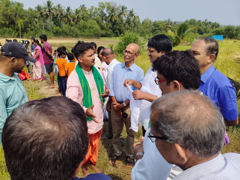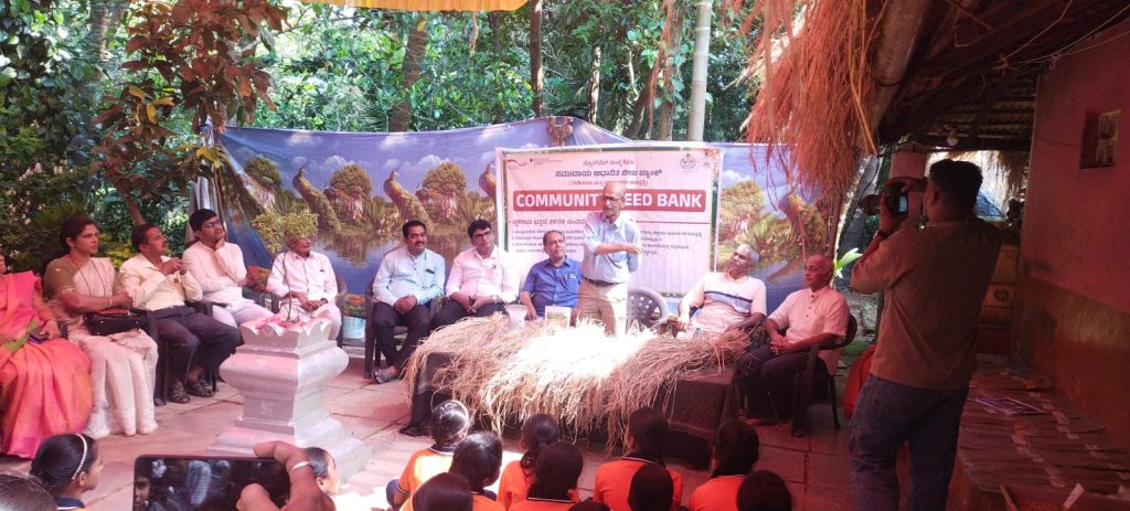 ಕುಮಟಾ: ತಾಲೂಕಿನ ಕಾಗಾಲ ಗ್ರಾಮದ ಪ್ರಗತಿಪರ ಯುವ ರೈತ ಕಡ್ಲೆ ಮನೆ ನಾಗರಾಜ ಮೋಹನ ನಾಯ್ಕ ಇವರ ಹೊಲದಲ್ಲಿ ‘ಸ್ಕೊಡ್ವೇಸ್’ ಸಂಸ್ಥೆ ಆಯೋಜಿಸಿದ ಸಮುದಾಯ ಆಧಾರಿತ ‘ಸೀಡ್ ಬ್ಯಾಂಕ್'(Community Seed Bank) ಉದ್ಘಾಟನೆ, ವಿಶಿಷ್ಟ ತಳಿಗಳ ಕ್ಷೇತ್ರ ವೀಕ್ಷಣೆ ಮತ್ತು ಸಾಂಕೇತಿಕ ಪೈರು ಕಟಾವು ಕಾರ್ಯಕ್ರಮ ವನ್ನು ಖ್ಯಾತ ಪರಿಸರ ವಿಜ್ಞಾನಿ ಡಾ. ಸುಭಾಷ್ ಚಂದ್ರನ್ ಅವರು ಗಣ್ಯರೊಡಗೂಡಿ ನೆರವೇರಿಸಿದರು.