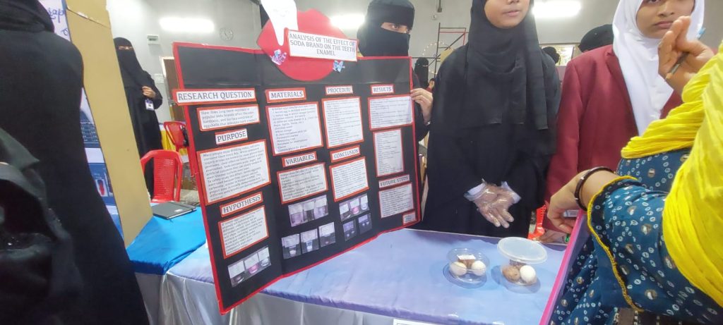 o ನ್ಯೂ ಶಮ್ಸ್ ಶಾಲೆ: ಸಾರಾ ದಾಮುದಿ, ನೂರುಸ್ಸಮಾ, ಅಮಿನಾ ಮರ್ವಾ – ‘ಹಲ್ಲುಗಳ ದಂತಕವಚದ ಮೇಲೆ ಸೋಡಾ ಬ್ರಾಂಡ್ಗಳ ಪರಿಣಾಮಗಳ ವಿಶ್ಲೇಷಣೆ’.