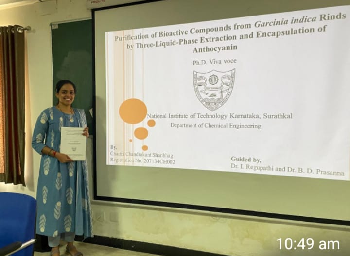 ಭಟ್ಕಳ: ಮದುವೆಯಾದ ನಂತರ ಸಂಸಾರದ ಗೋಜಿನಲ್ಲಿ ಓದು ಮುಂದುವರೆಸಿ ಸಾಧನೆಗೈಯುವುದು ತುಂಬಾ ಕಷ್ಟ ಎನ್ನುವ ಹುಡುಗಿಯರ ಸಾಲಿನಲ್ಲಿ ನೆಲೆಗೊಳ್ಳದೆ ಸತತ ಓದು ಹಾಗೂ ಪರಿಶ್ರಮದಿಂದ NITK ಸುರತ್ಕಲ್ ನಲ್ಲಿ ಕೆಮಿಕಲ್ ಇಂಜಿನಿಯರಿಂಗ್ ವಿಷಯದ ಬಗ್ಗೆ ಸಂಶೋಧನೆ ಮಾಡಿ ಚೈತ್ರ ಡಾಕ್ಟರೇಟ್(PHD) ಪದವಿ ಪಡೆದುಕೊಂಡಿದ್ದಾಳೆ.