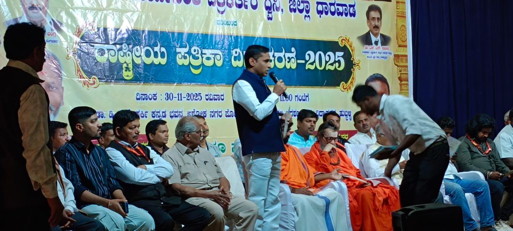 ಹುಬ್ಬಳ್ಳಿ: ಭಾನುವಾರ ಮಧ್ಯಾಹ್ನ 12.30 ಕ್ಕೆ ಹುಬ್ಬಳ್ಳಿಯ ಡಾ.ಡಿ.ಎಸ್ ಕರ್ಕಿ ಕನ್ನಡ ಭವನ ದಲ್ಲಿ ಕಾನಿಪ ಧ್ವನಿ ವತಿಯಿಂದ ರಾಷ್ಟ್ರೀಯ ಪತ್ರಿಕಾ ದಿನಾಚರಣೆಯನ್ನು ಸಸಿಗೆ ನೀರು ಹಾಕುವ ಮೂಲಕ ಸಾನಿಧ್ಯವನ್ನು ವಹಿಸಿದಂತ ಹುಬ್ಬಳ್ಳಿಯ ಅಕ್ಕಿಹೊಂಡ ಹೊಸಮಠದ ಪರಮಪೂಜ್ಯ ಜಗದ್ಗುರು ಶ್ರೀ ಡಾ.ಚಂದ್ರಶೇಖರ ಶಿವಯೋಗಿ ಸ್ವಾಮಿಗಳು,ಸುಕ್ಷೇತ್ರ ನೀಲಗುಂದ ಮಠದ ಪರಮಪೂಜ್ಯ ಶ್ರೀ ಮಂಜುನಾಥ ಅಪ್ಪಾಜಿಯವರು, ಹೈಕೋರ್ಟ್ ನ ವಿಶ್ರಾಂತ ನ್ಯಾಯಮೂರ್ತಿಗಳಾದ ಶ್ರೀ ಅರಳಿ ನಾಗರಾಜ್ ರವರು ಉದ್ಘಾಟಿಸಿದರು.