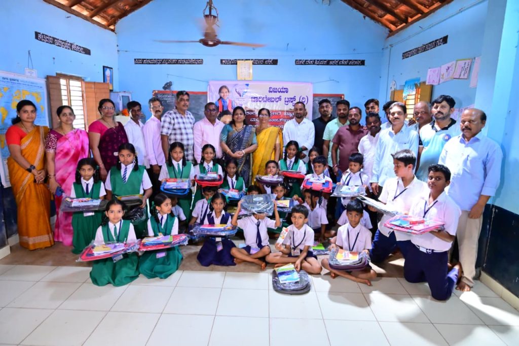 ಈ ವೇಳೆ ವಿಜಯ ಚಾರಿಟೇಬಲ್ ಟ್ರಸ್ಟ್ ಮುಖ್ಯಸ್ಥರಾಗಿರುವ ಹಾಗೂ ಸಮಾಜ ಸೇವಕಿ ಶ್ರೀಮತಿ ದೀಪಾ ನಾಯ್ಕ ವಿದ್ಯಾರ್ಥಿ ಮಕ್ಕಳಿಗೆ ಸ್ಕೂಲ್ ಬ್ಯಾಗ್ ಪಟ್ಟಿ ಪೆನ್ ಡಿಶ್ನರಿ ಬುಕ್ ವಿತರಿಸಿ ಮಕ್ಕಳ ಮುಂದಿನ ವಿದ್ಯಾಬ್ಯಾಸಕ್ಕೆ ಶುಭ ಹಾರೈಸಿದರು